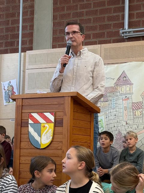 Im Zuge der 800 Jahr Feier von Reichenschwand veranstaltete die Grundschule Reichenschwand zusammen mit dem Haus für Kinder ein großes Mittelalterfest. Zur Begrüßung sangen alle Kinder gemeinsam das Lied „Rudi Rittersmann“. Danach konnten die Schulkinder und die Kinder des Hauses für Kinder an 11 Mitmachstation z.B. Ritterhelme, Schwerter oder Ritterschilde basteln. Sie konnten Schatzkästchen individuell gestalten, Haarbänder flechten oder Murmelspiele spielen. Außerdem gab es einen Steckenpferd Parcour oder die Möglichkeit sich im Dosen- und Ringwerfen zu messen.
